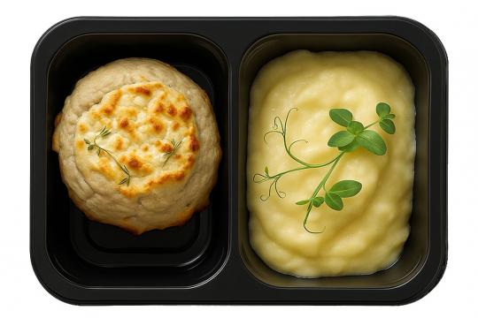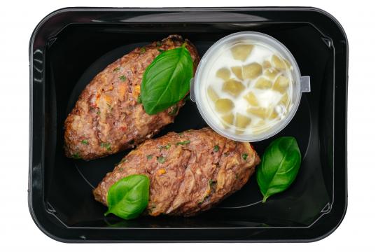 Мясная ватрушка с сырно-чесночным кремом. Картофельное пюре