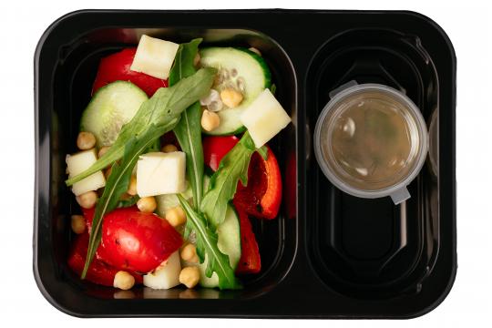 Салат с нутом, печеным перцем и медово-горчичной заправкой