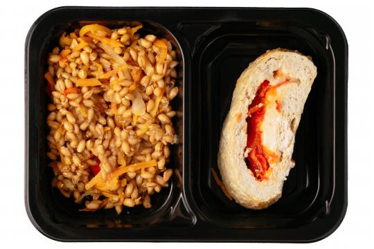 Рулет из индейки. Полба с овощами.