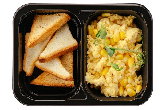 Скрэмбл с кукурузой. Гренки.