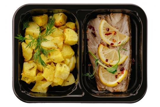 Скумбрия запеченная с лимоном. Картофель запеченный