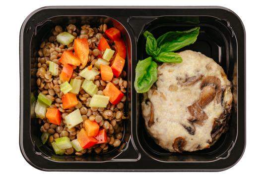 Чикен болл с шампиньонами и сыром. Чечевица с овощами